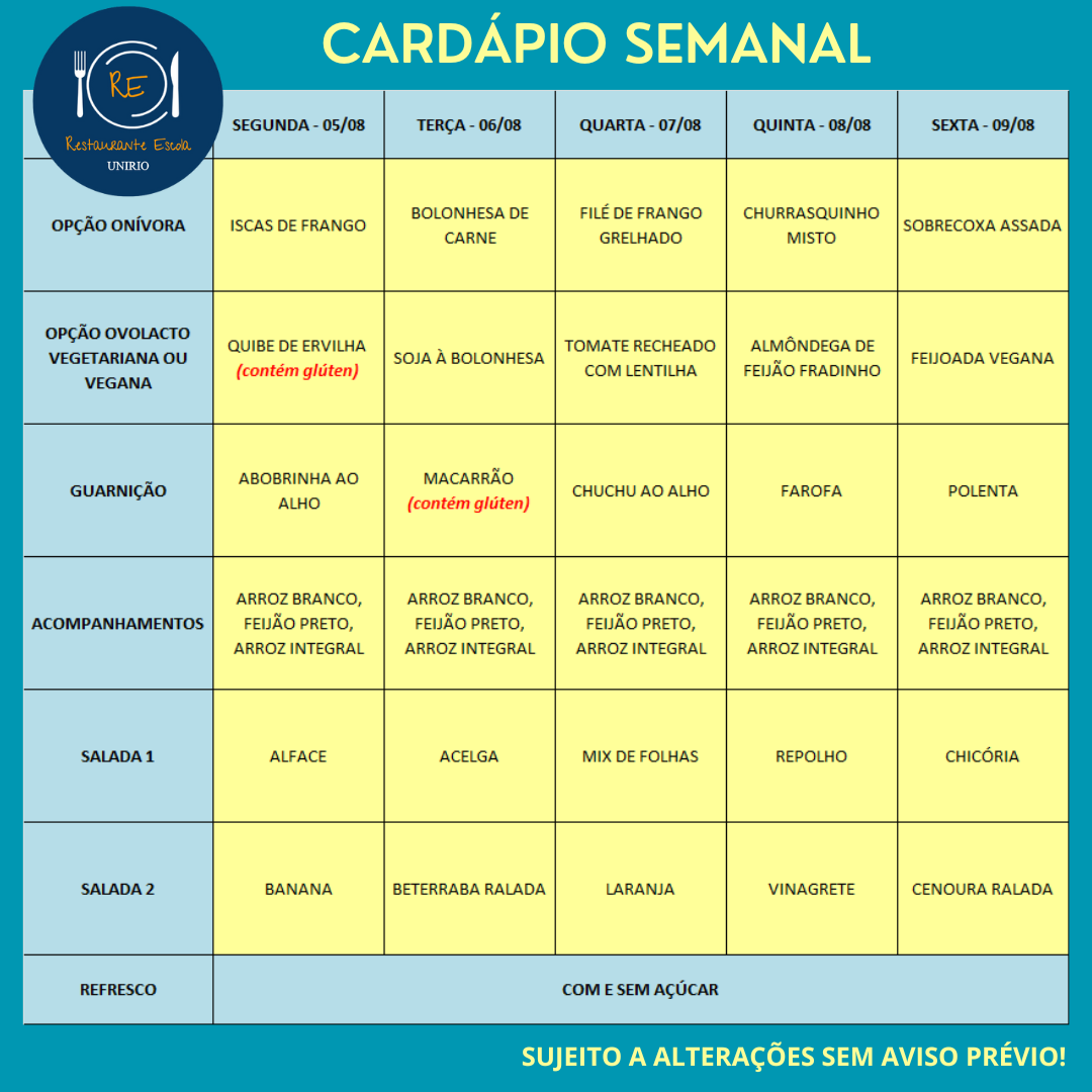 Você está aqui: Página Inicial / Nutrição PRAE(erro) / Cardápios PUPO 2024 / 05/08 a 09/08/24