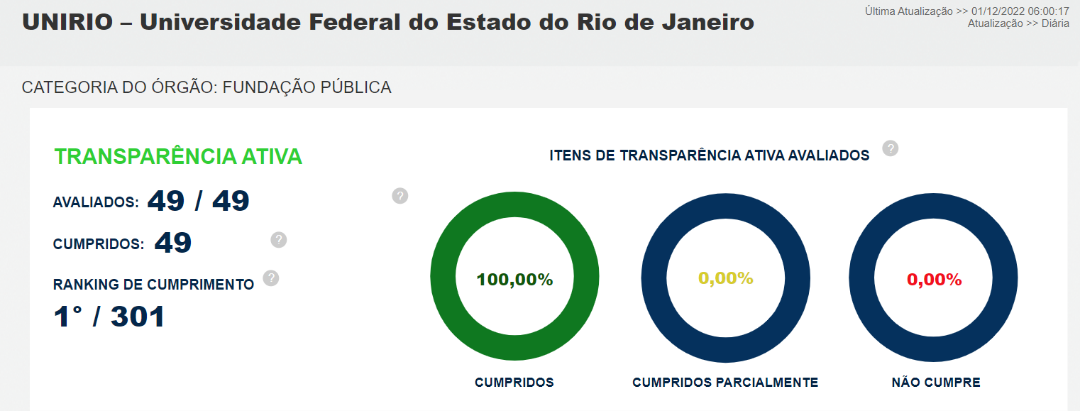 UNIRIO cumpre 100% dos itens do Painel da LAI