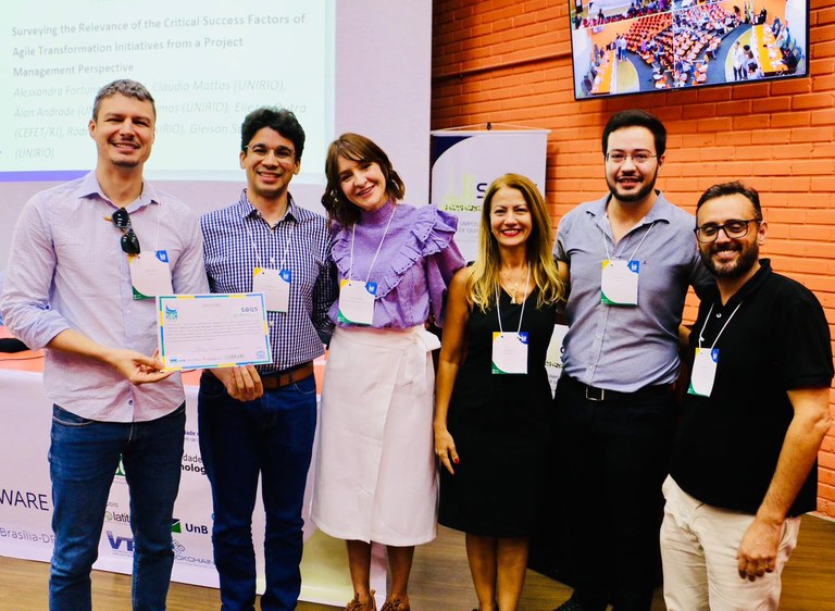 Da esquerda para a direita: Gleison Santos (PPGI), Ismayle Santos, Monalessa Barcellos e Edna Canedo (todos da equipe SBQS 2023), Rodrigo Santos (PPGI) e Eliezer Dutra, egresso do Programa (Imagem: Divulgação)