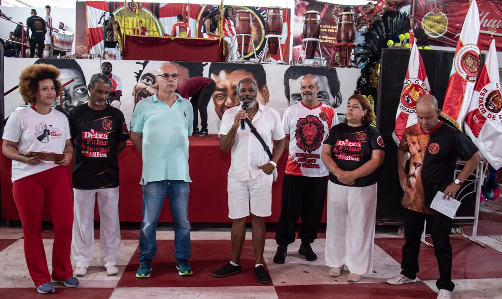 Professor Jair Martins de Miranda (ao microfone) e presidente da Escola, Edson Marinho (à direita do docente), firmaram compromisso para formalização de acordo de cooperação técnica (Foto: AC Junior - Cultural Estácio)