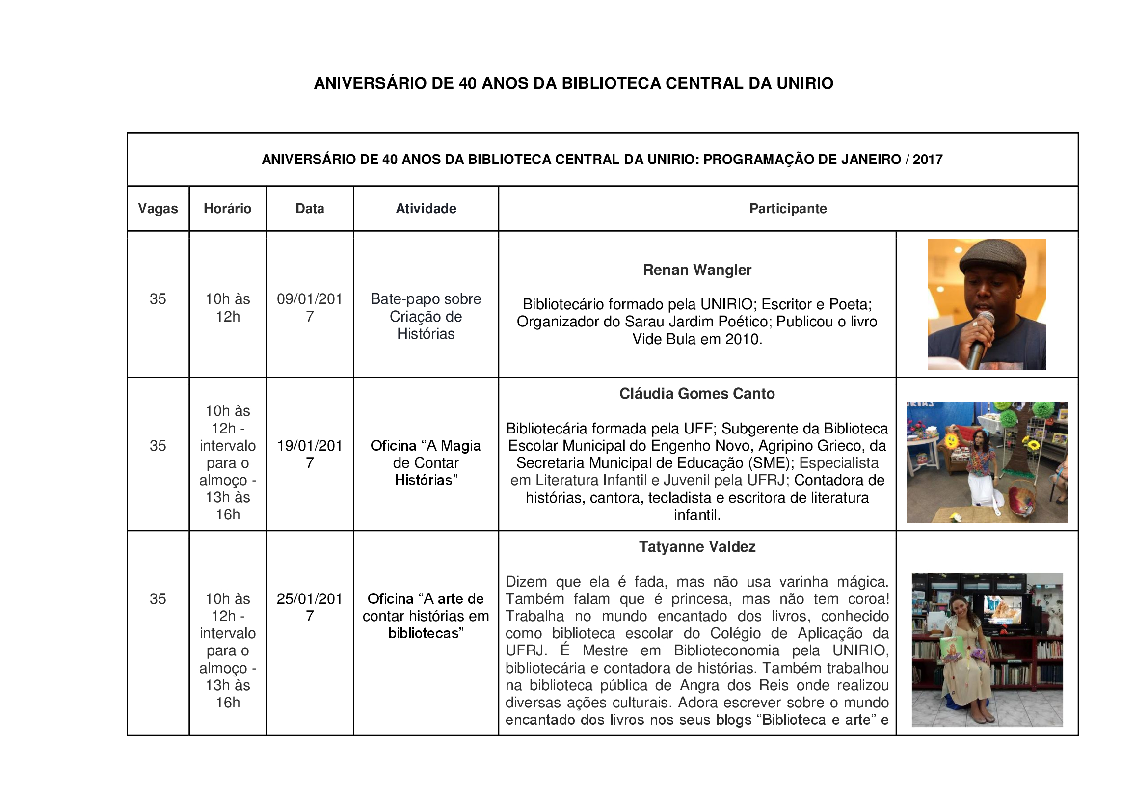 PROGRAMAÇÃO JANEIRO 40 ANOS