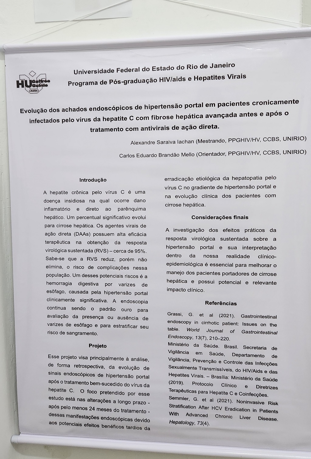 "TRATAMENTO DO VÍRUS DA HEPATITE C - TAXA DE RESPOSTA VIROLÓGICA SUSTENTADA COM O ANTIVIRAIS DE AÇÃO DIRETA DOS PACIENTES DO AMBULATÓRIO DE HEPATOLOGIA DO HOSPITAL UNIVERSITÁRIO GAFFRÉE E GUINLE." (Águeda Miranda)
