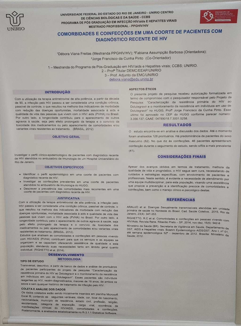 "COMORBIDADES E COINFECÇÕES EM UMA COORTE DE PACIENTES COM DIAGNÓSTICO RECENTE DE HIV" (Débora Viana)