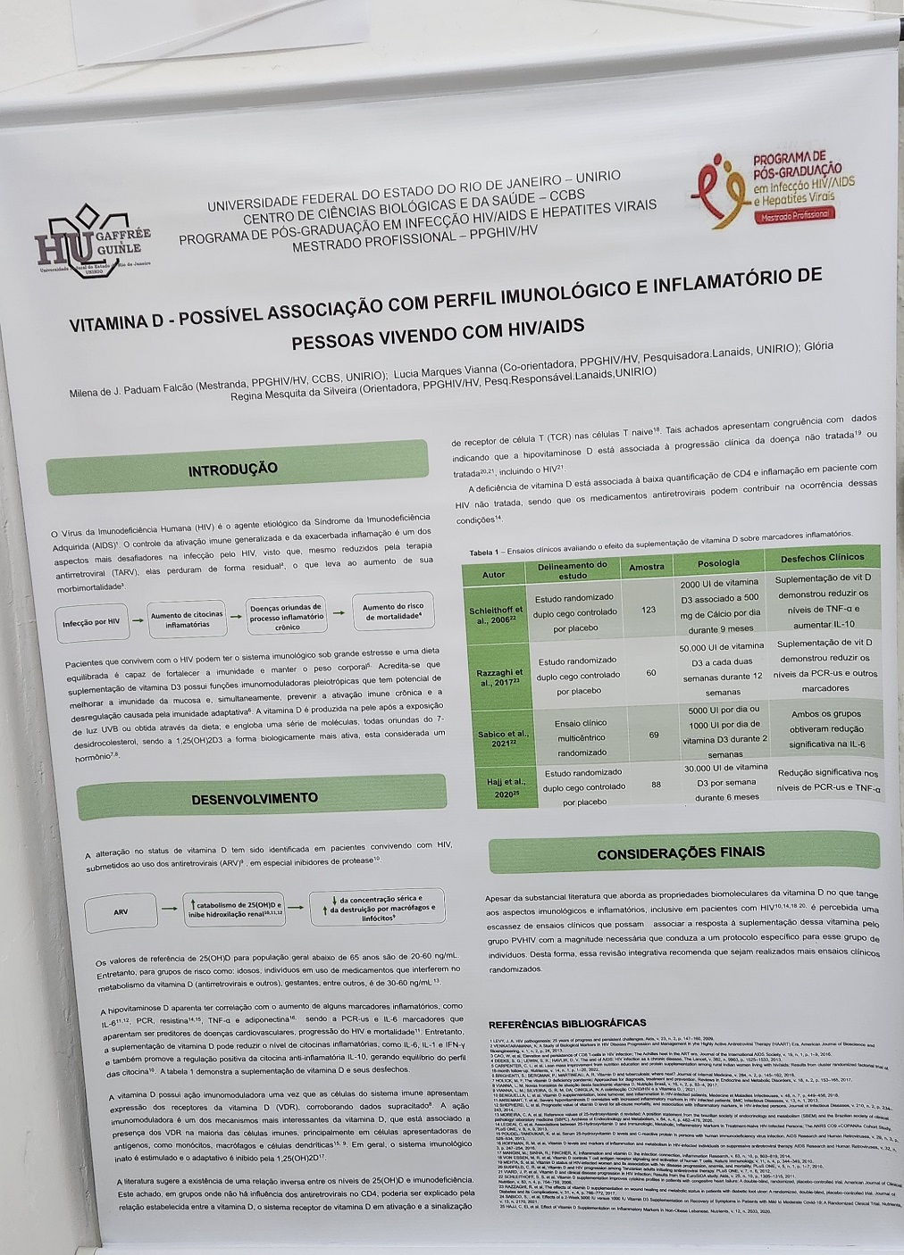 "VITAMINA D - POSSÍVEL ASSOCIAÇÃO COM PERFIL IMUNOLÓGICO E INFLAMATÓRIO DE PESSOAS VIVENDO COM HIV/AIDS." (Milena de Jesus)