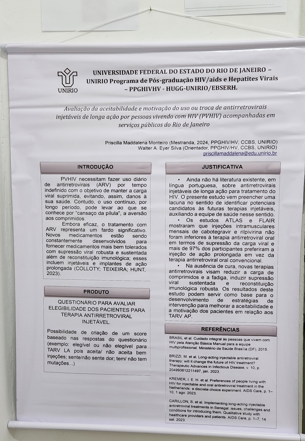 "Avaliação da aceitabilidade e motivação do uso ou troca de antirretrovirais injetáveis de longa ação por pessoas vivendo com HIV (PVHIV) acompanhadas em serviços públicos do rio de Janeiro." (Priscilla Maddalena)