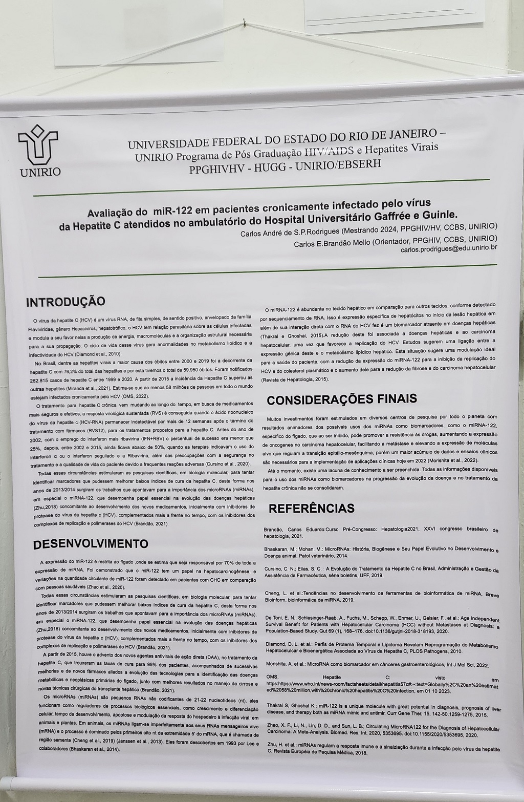 Você está aqui: Página Inicial / Eventos / Apresentação dos Pôsteres - PPGHIV/HV - 2024