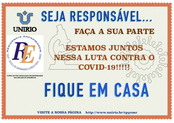 A Coordenação do Curso de Pós Graduação em Nível de Especialização, sob a Forma de Treinamento em Serviço para Enfermeiros, nos Moldes de Residência, da Universidade Federal do Estado do Rio de Janeiro (UNIRIO) em parceria com a Superintendência Estadual do Ministério da Saúde no Rio de Janeiro (SEMS), torna pública, para conhecimento dos interessados, a abertura de inscrições para o Processo Seletivo Discente ao Curso de Especialização Lato Senso, com a finalidade de preencher 74 (setenta e quatro) vagas por ordem de classificação dos aprovados, para o período de março de 2021 a fevereiro de 2023. Para maiores detalhes acessar o  EDITAL08/2020  no MENU PROCESSO SELETIVO. Acompanhamento  e inscrições, em breve, pelo site: www.funrio.org.br