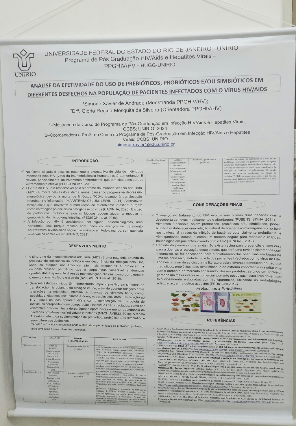 "Análise da Efetividade do Uso de Prebióticos, Probióticos e/ou Simbióticos em diferentes desfechos na população de pacientes infectados com o vírus HIVAIDS." (Simone Xavier)