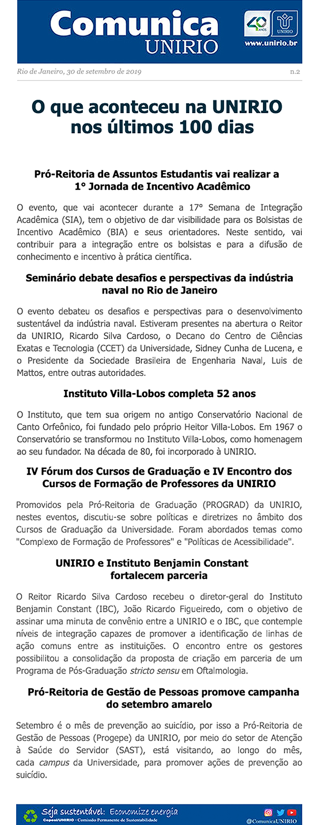 Você está aqui: Página Inicial / Arquivos / Comunica UNIRIO / O que aconteceu na UNIRIO_n2