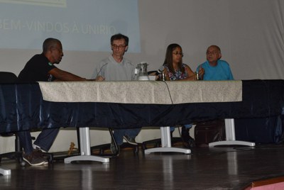 O Vice-Reitor da Unirio, Prof. Dr. Ricardo Silva Cardoso, fez a abertura do evento e destacou  os mais de 100 anos da Escola de Medicina e a tradição dos cursos. Além da satisfação em aumentar o corpo de profissionais na    UNIRIO no momento econômico e político em que vive o país.  A Pró-Reitora de Gestão de Pessoas em exercício, Elisabete Calabre Strazeri, deu boas-vindas as novos servidores e explicou que o HUGG é uma extensão da UNIRIO. “Somos um só. A UNIRIO é uma instituição muito acolhedora”, finalizou Elisabete. Já o Pró-Reitor de Graduação, Prof. Alcides Guarino destacou o trabalho que será realizado muitas vezes em conjunto com os curso de graduação da área de saúde.  O Diretor de Pós-Graduação e Pesquisa, Prof. Dr. Anderson Teodoro, parabenizou a iniciativa da PROGEPE  e mencionou o Programa de Incentivo à Qualificação (PRIQ) para os servidores com o objetivo de melhorar a formação e a possibilidade do cadastramento dos projetos de pesquisa como coordenadores.  A Pró-Reitoria de Extensão e Cultura, Profa. Dra. Cláudia Aiub, falou dos Projeto de Extensão e Cultura coordenados por servidores técnico-administrativos com objetivo de levar expertise para a sociedade. A Pró-Reitora de Planejamento, Lorreine Hermida, falou da grande nomeação de servidores para o HUGG e da importância da profissão que lida com a vida e o sofrimento humano. “Pedimos dedicação ao hospital, tanto no sentido de melhorar a qualidade no atendimento quanto na formação”, disse Lorreine.