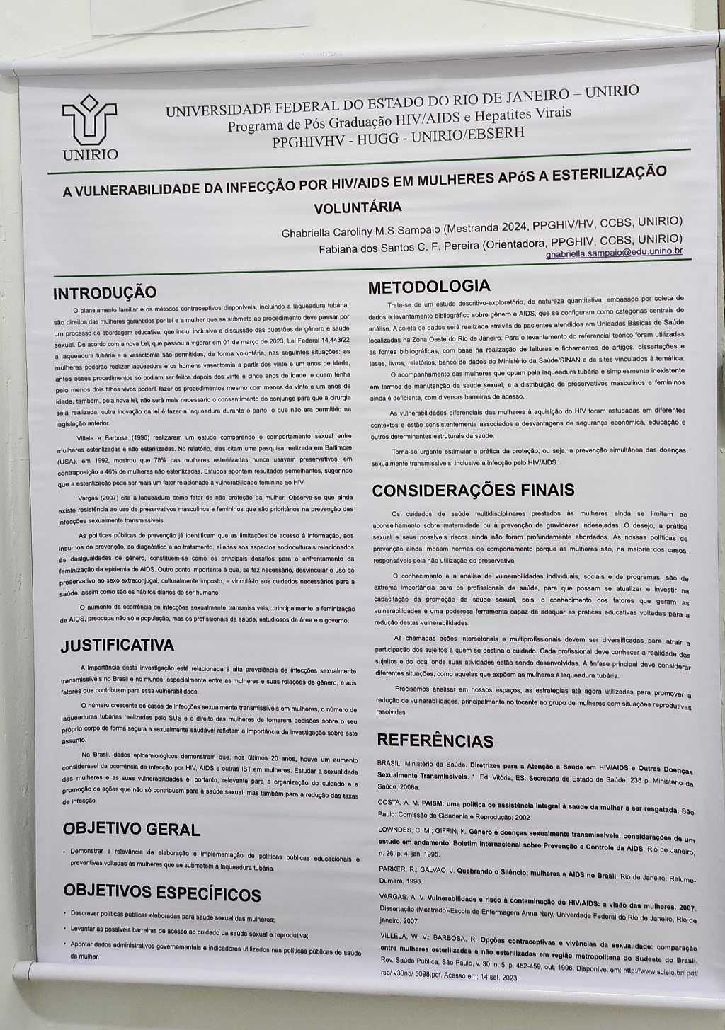 "A VULNERABILIDADE DA INFECÇÃO POR HIV/AIDS EM MULHERES APÓS A ESTERILIZAÇÃO VOLUNTÁRIA." (Ghabriella Caroliny)