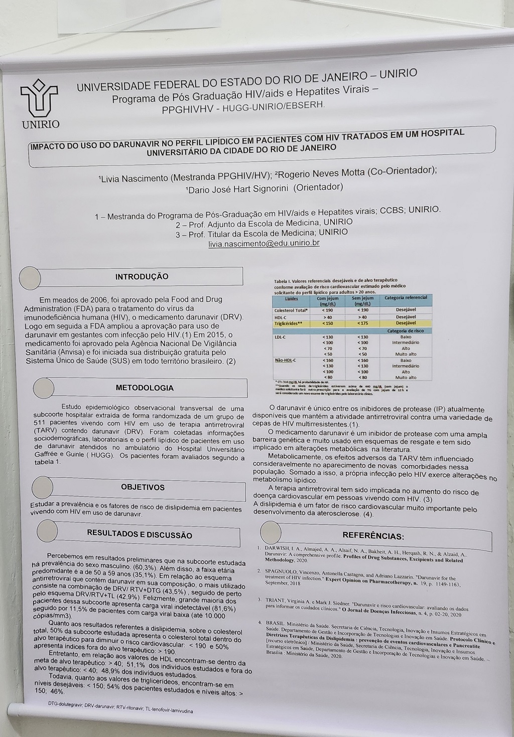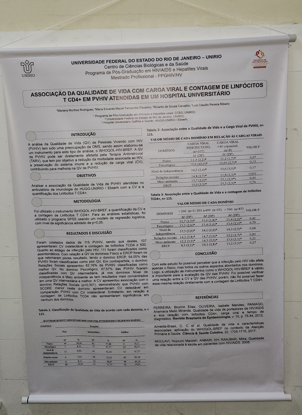 "Associação da Qualidade de vida com carga viral e contagem de Linfócitos T CD4+ em PVHIV atendidas em um Hospital Universitário." (Mariana Munhoz)
