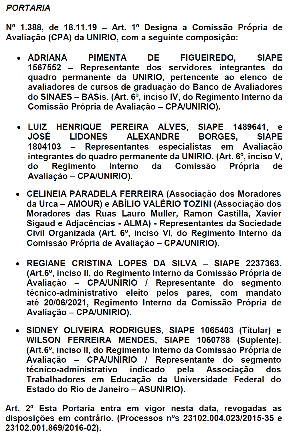 Processo Eleitoral CPA/UNIRIO - Triênio 2022/2025