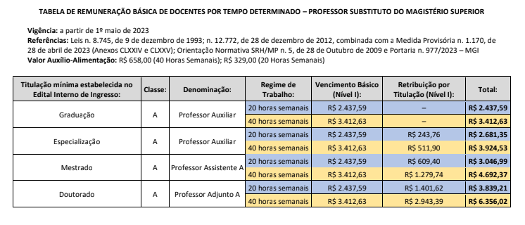Remuneração - Professor Substituto do Magistério Superior