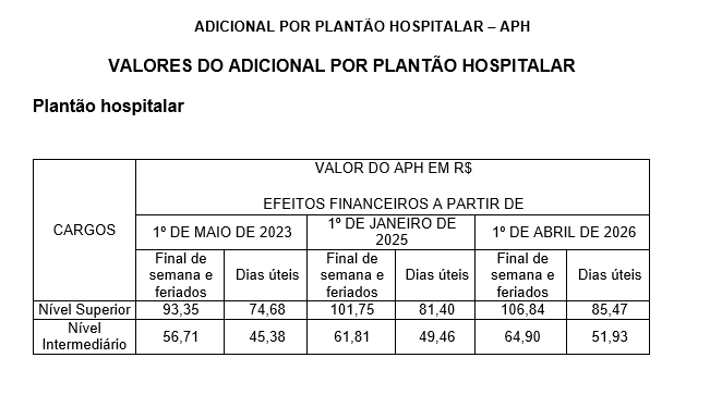 Tabela de Adicional por Plantão Hospitalar - APH