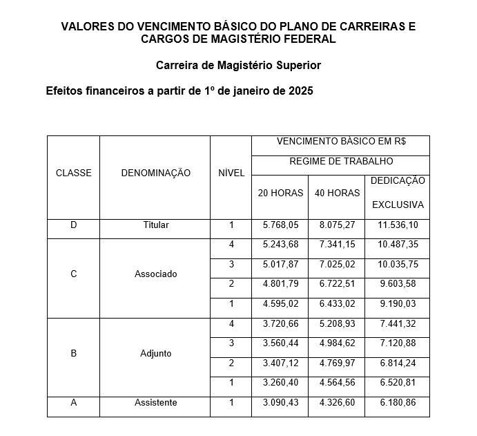 Vencimento básico - Técnico-Administrativos-IFES