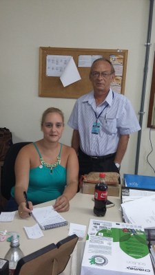Simone, em sua mesa de trabalho e Carlos Guilhon, Diretor da DGPA