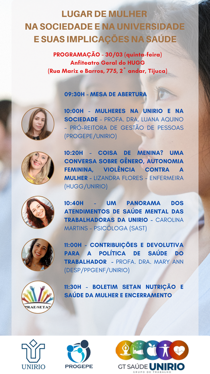 PROGEPE/GT SAÚDE divulga evento em homenagem ao mês das mulheres no HUGG