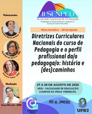A Universidade Federal do Rio de Janeiro (UFRJ) receberá, entre 27 e 29 de agosto de 2025, a segunda edição do Seminário Nacional de Pedagogia (SENPED), promovido pela Rede Nacional de Pesquisa em Pedagogia (RePPed). Com o tema “A Pedagogia do Tempo Presente: a tradição e a busca por outros horizontes”, o evento reunirá pesquisadores, profissionais de educação e estudantes para discutir temas relacionados à pedagogia e à educação brasileira.