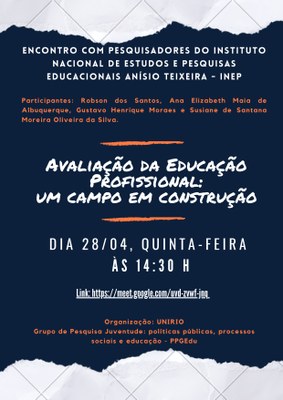 Evento - Avaliação da Educação Profissional: um campo em construção. 28/04/2022 as 14:30h