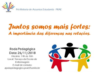 PRAE convida para a Roda Pedagógica do dia 26/11/18