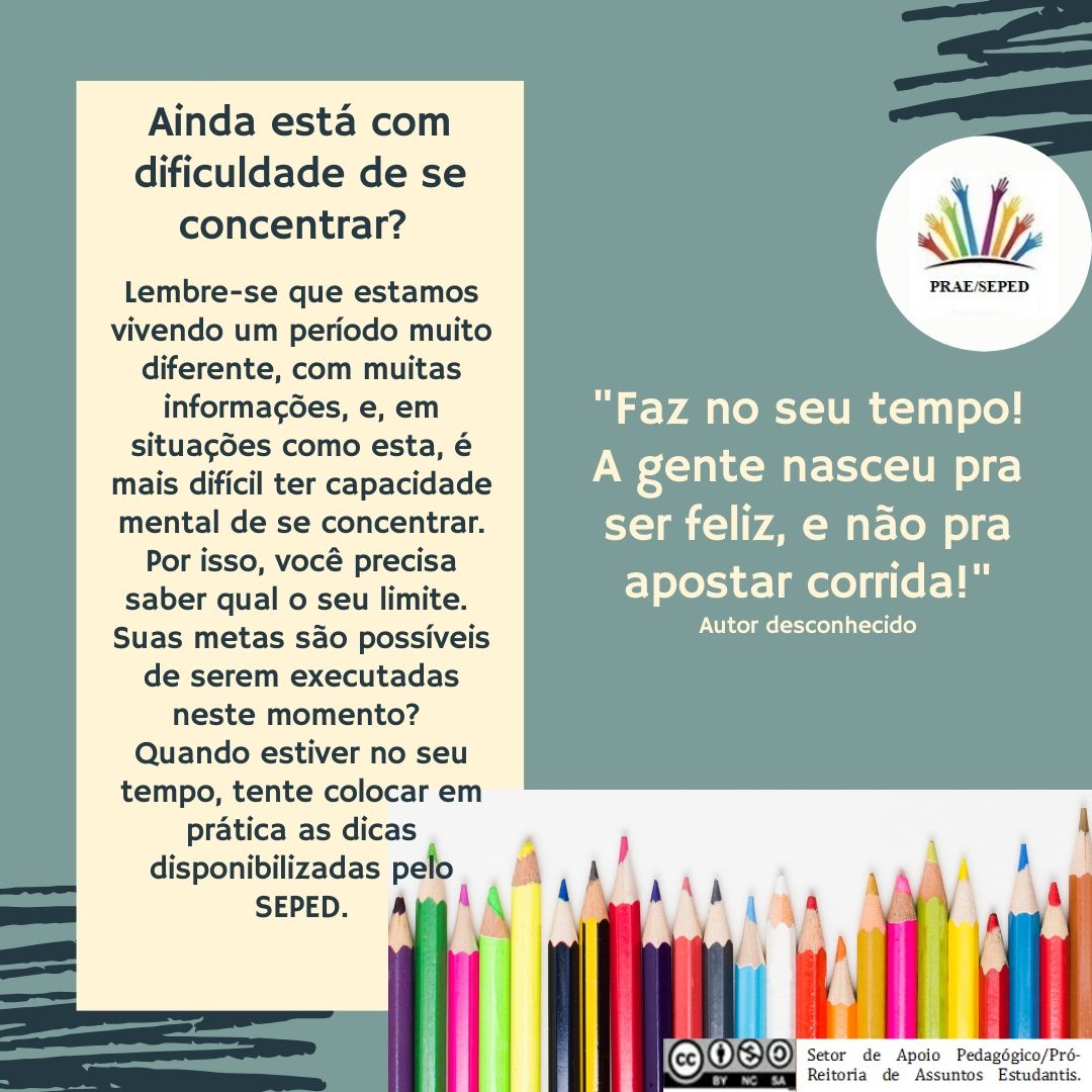 - Ainda está com dificuldade de se concentrar? [Clique aqui]