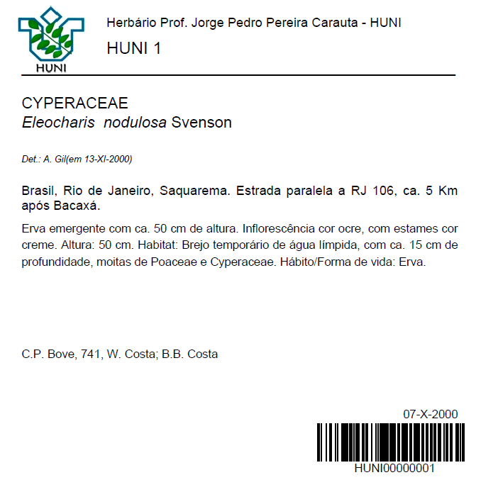 Instruções para depósito de material são fornecidas na seção Serviços. Seguidas as instruções, os materiais vegetais podem ser depositados mediante agendamento prévio, por telefone ou e-mail. Após o depósito do material, o HUNI terá até 10 dias para fornecer ao depositante o número de tombo do seu material. O número de tombo será enviado ao depositante via e-mail, na forma de arquivo tipo PDF. Ele consiste na etiqueta com logo do Herbário HUNI, com o número de tombo do exemplar e com as informações fornecidas sobre a coleta e sobre o material depositado.