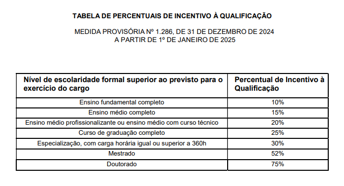 Tabela de Retribuição por Titulação - RT para o Regime de 40 horas semanais