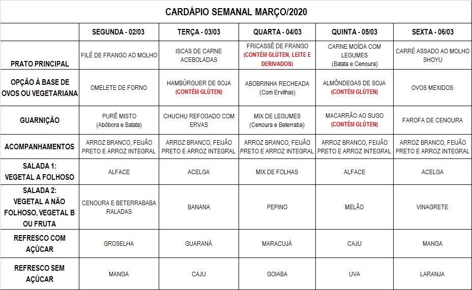Você está aqui: Página Inicial / Nutrição PRAE / Cardápios RE (Pupo) 2020 / 02.03 a 06.03.20