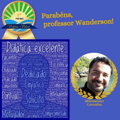 As indicações da primeira votação, realizada apenas por discentes, foram aceitas até dia 15 de setembro de 2023. Iniciamos a segunda votação com os finalistas, professores (as): Fábio Veríssimo, Michelle Sampaio e Wanderson Carvalho. A votação agora é para toda comunidade acadêmica. O vencedor foi o professor Wanderson Carvalho.