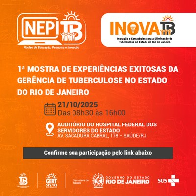 O evento será realizado no dia 21/10/2025, das 08h30min às 16h00 min, no Auditório do Hospital Federal dos Servidores do Estado - Avenida Sacadura Cabral, 178 - Saúde – 20221-161 – RJ, reunindo profissionais, gestores e parceiros envolvidos nas ações de controle da tuberculose no estado. Formulário de inscrição https://forms.gle/TySTaiyh17UQgzS48