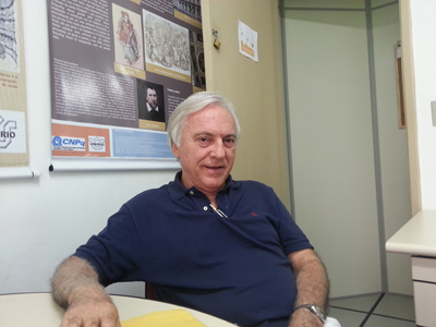 ENTREVISTAS COM GRANDES CENÓGRAFOS - 2015 O cenógrafo José Dias dando entrevista para a pesquisa Estudos do Espaço Teatral (7a etapa) à coordenadora e à bolsista IC/FAPERJ Luana Prado em abril 2015.