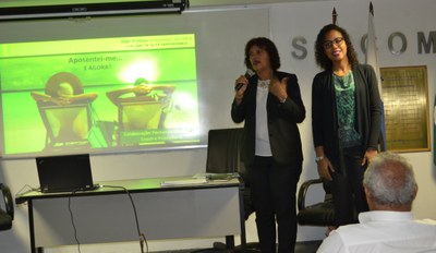 As Coaches Nair Fátima e Fernanda Gonçalves durante a palestra “Aposentei-me... e AGORA”