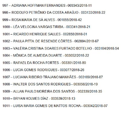 A Pró-Reitoria de Gestão de Pessoas (PROGEPE) informa abaixo a listagem com os números das portarias editadas pela Divisão de Acompanhamento Funcional e Formação Permanente (DAFFP) em 19/06, 25/06, 02/07, e 10/07/2018 . As portarias são referentes aos processos de Progressão/Promoção Docente/Aceleração/RT que serão publicadas no Boletim Interno da UNIRIO.