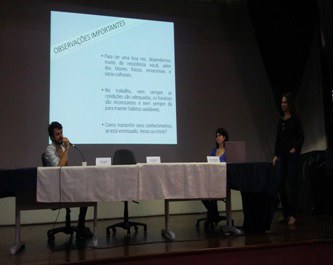 Os fonoaudiólogos Luisa Catoira e Junio Duarte falaram da importância do cuidado com a voz, do trabalho de adequação de postura para falar, da utilização da respiração costo-diafragmática e de outros assuntos relacionados ao tema. Explicaram também, o trabalho que realizam com atores, cantores, professores e outros profissionais.