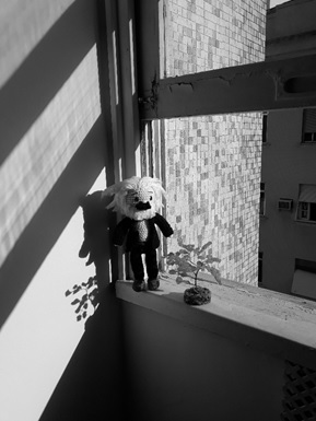 Essa foto foi tirada em meu atual apartamento. No sol da tarde, o trabalhador olha pela janela, melancólico. Em respeito à indicação de isolamento social, está em casa. A natureza de sua ocupação permite que ele permaneça em trabalho remoto, mas ele sente falta do mundo, o qual vê pela janela. Atualmente, para matar as saudades da sua anterior vida cotidiana, se apega a pequenas coisas, como as plantas de seu apartamento (por isso a árvore). Na esperança de dias melhores, seu olhar fixa o horizonte.