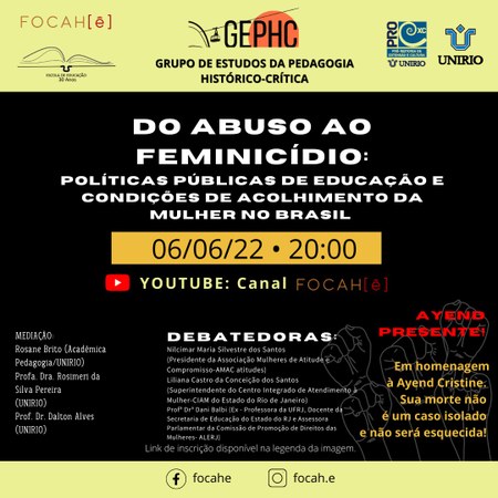 Grupo de Estudos da Pedagogia Histórico-Crítica promove evento sobre o combate à violência à mulher. Saiba mais