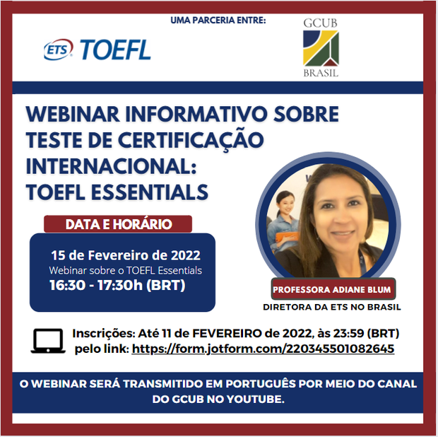 Inscrições abertas para o Webinar informativo sobre o exame TOEFL Essentials.
