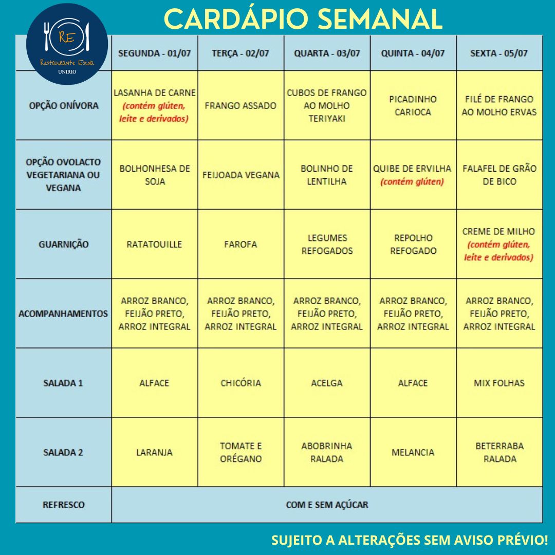Você está aqui: Página Inicial / Nutrição PRAE / Cardápios PUPO 2024 / 01-07 A 05-07-24