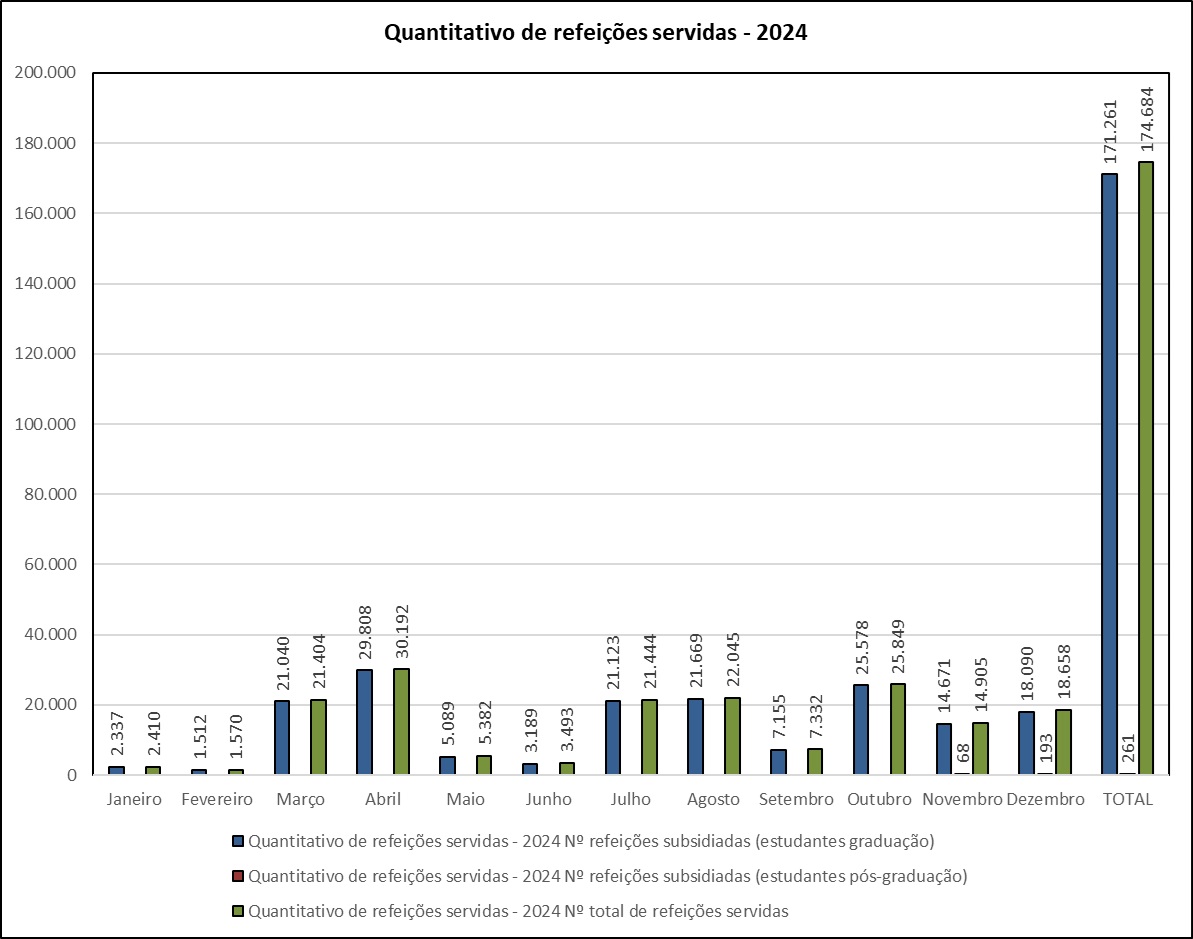 Você está aqui: Página Inicial / Nutrição PRAE / gráficos qtd refeições restaurante / 2024 / ref subsi x total ref. jan-dez 2024
