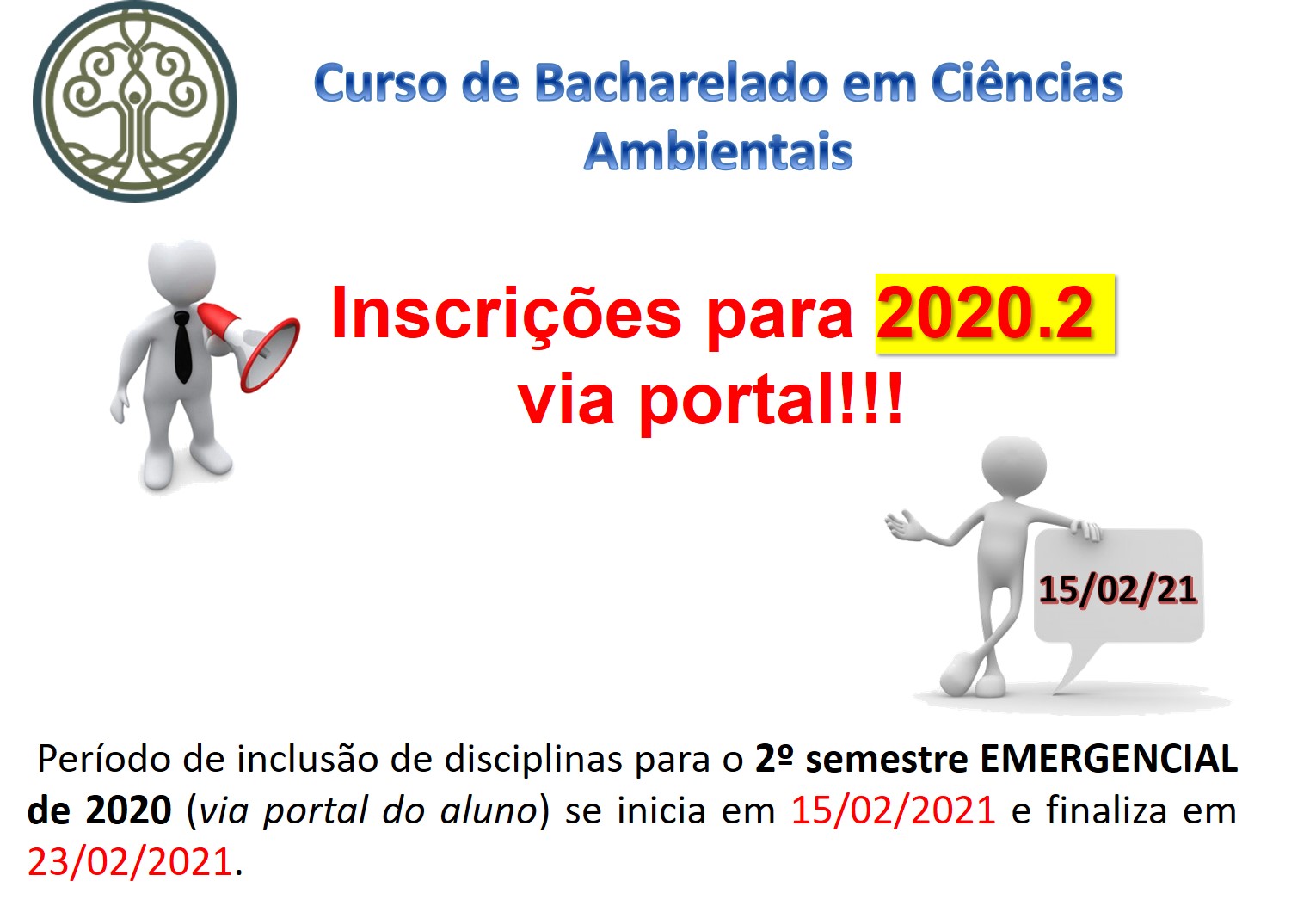 ATENÇÃO ALUNOS, o prazo para inscrição de disciplinas, via portal do aluno, será iniciado em 15/02/2021 e terminará em 23/02/2021. Teremos apenas uma semana para as inscrições. É fundamental que acesse o portal do aluno para se inscrever nas disciplinas que tem interesse.