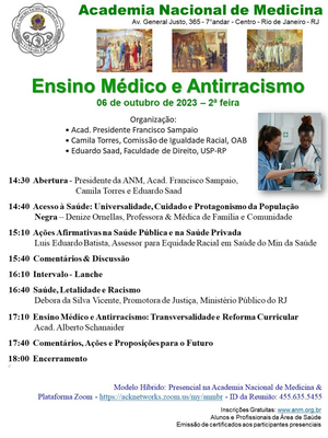 Inscrições: https://www.anm.org.br/ensino-medico-e-antirracismo/