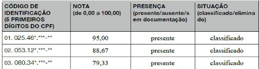 Os candidatos que não compareceram à prova de defesa de memorial ou não entregaram documentação, conforme artigo 4.17 do Edital Nacional, estão automaticamente eliminados.