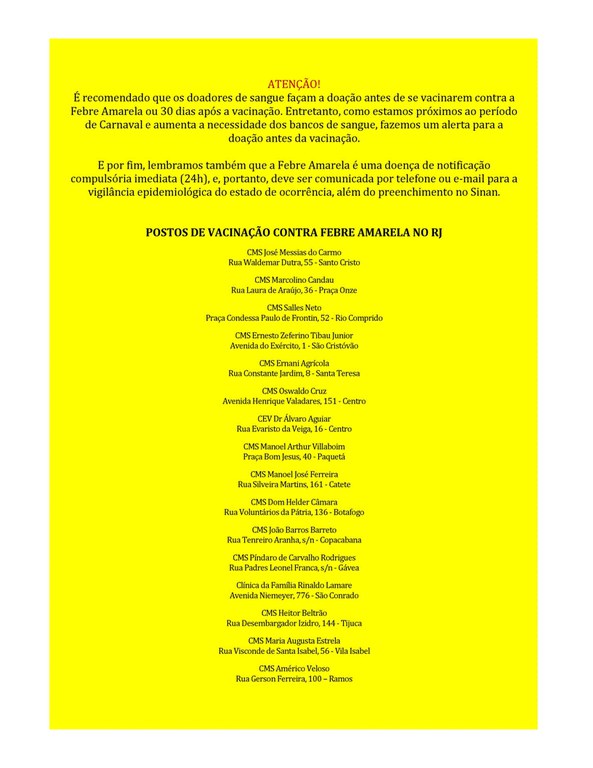 Informações através dos telefones: (21) 3808-2070 / 3808-2254 (das 9h às 17h).