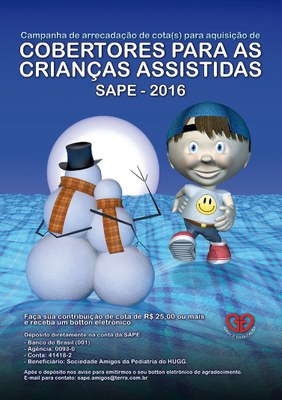 A SAPE promove o Sábado Solidário que acontece sempre no segundo sábado de cada mês, quando será informado as principais necessidades. A próxima edição será no dia 13 de agosto. Você pode contribuir durante o evento ou realizar depósito bancário na conta corrente do SAPE no Banco do Brasil (001), Agência 0093-0, C/C nº 41.418-2. Além do Sábado Solidário, a SAPE também promove campanhas como a do cobertor.