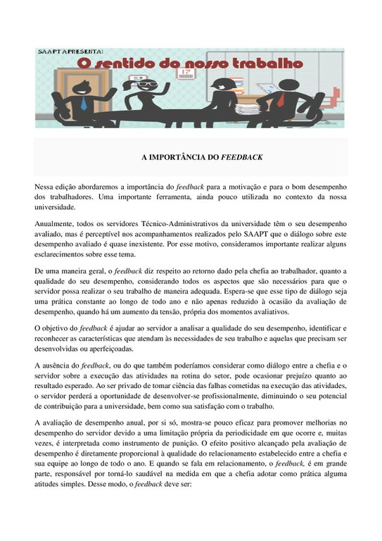 Mais informações podem ser obtidas na Divisão de Acompanhamento Funcional e Formação Permanente (DAFFP) através do e-mail progepe.daffp@unirio.br ou pelo telefone (21) 2542-5516.