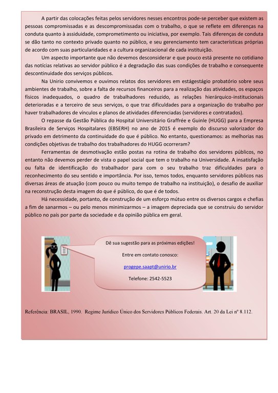 Veja o relatório com os dados preliminares levantados a partir das Avaliações de Desempenho do ano de 2017 acessando: www.unirio.br/progepe/avaliacao-de-desempenho. Mais informações podem ser obtidas no SAAPT por meio do telefone 2542-5523 e do e-mail: progepe.saapt@unirio.br