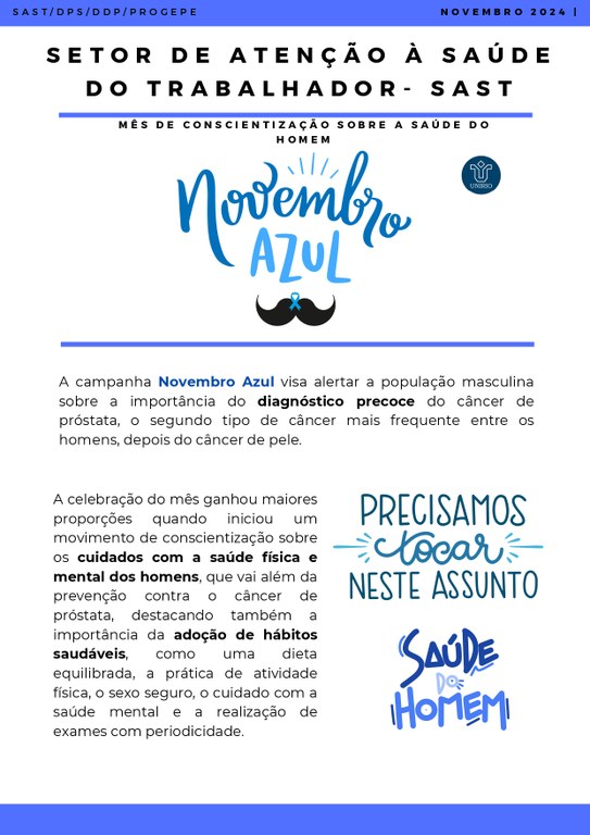 SAST/PROGEPE divulga informativo sobre a Campanha do Novembro Azul