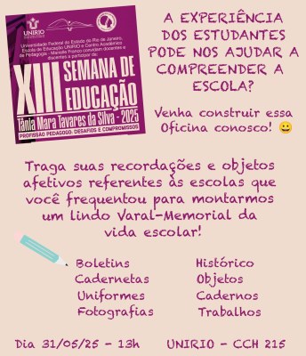 Você está aqui: Página Inicial / Oficina em 31/05: A Experiência dos estudantes pode nos ajudar a compreender a escola?