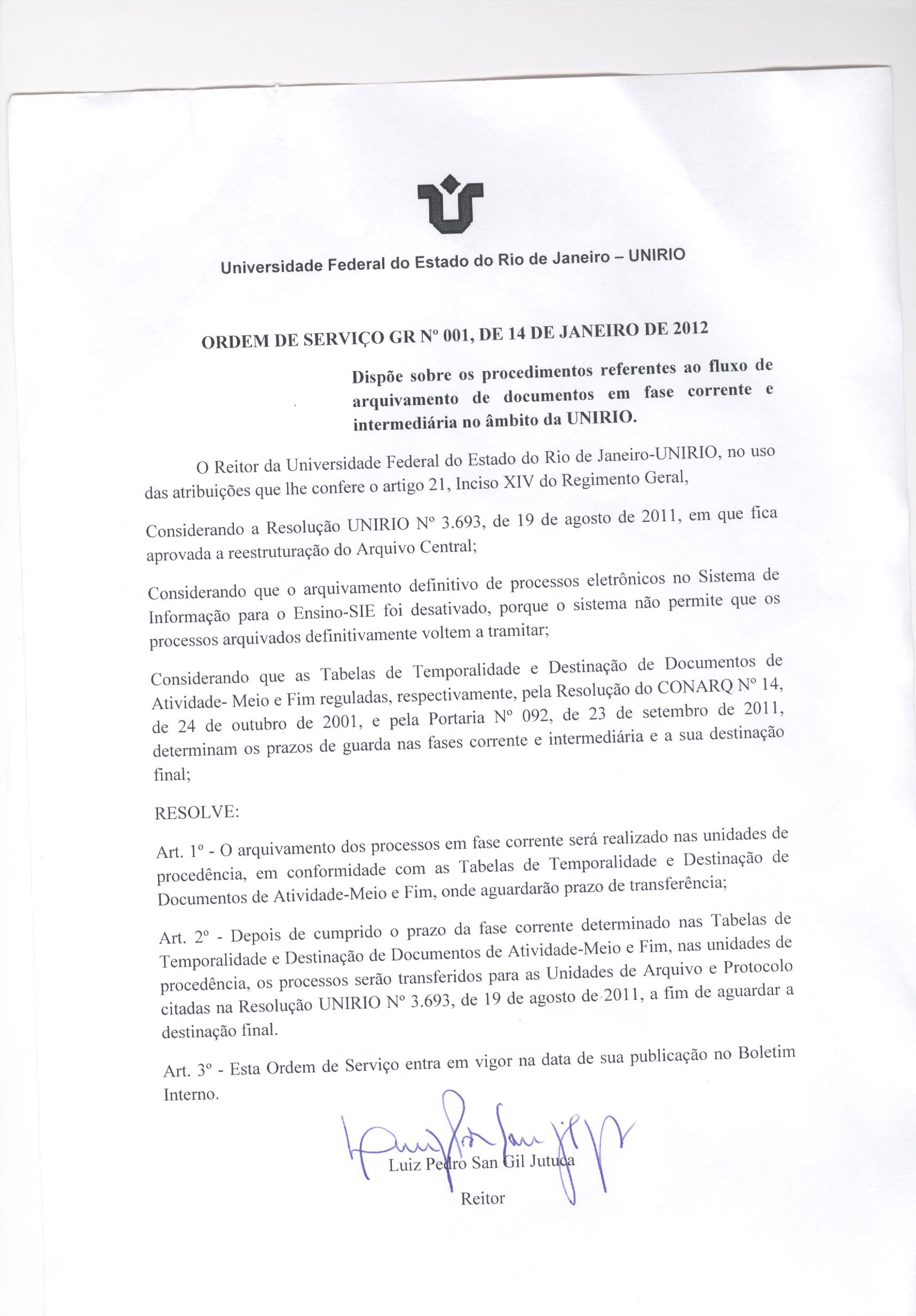 - Ordem de Serviço GR n° 001, de 14/01/2012. Ordem de Serviço GR n° 01 de 14-01-2012.pdf — PDF document, 617Kb